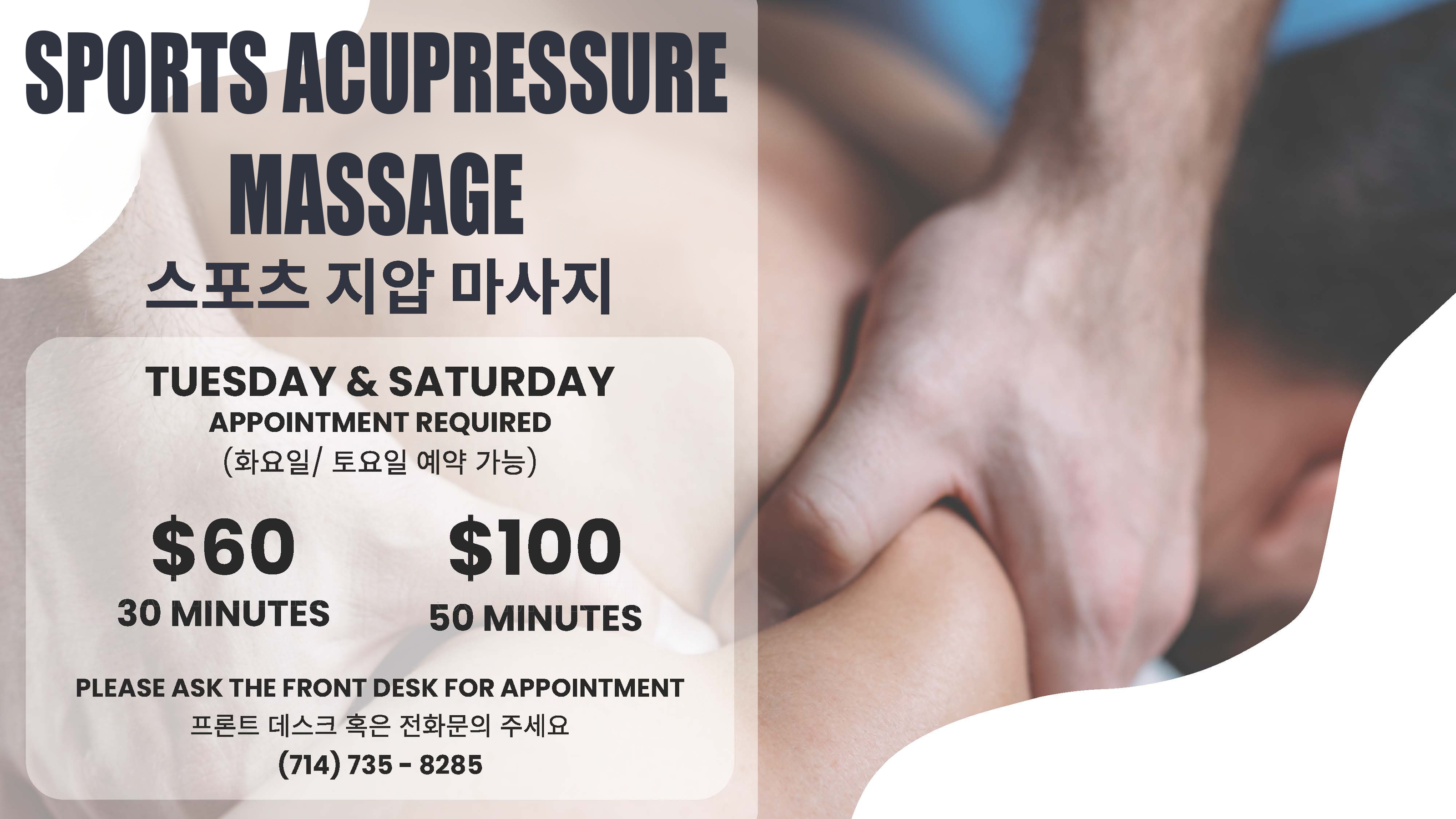 Book an appointment with our in-house Sports Acupressure Massage specialist and experience targeted relief and muscle rejuvenation!